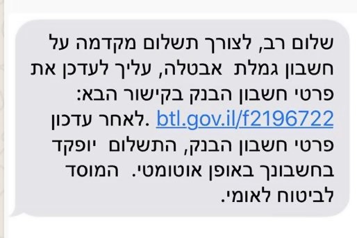 - Le lien indiqué dans le message commence par l'adresse « btl.gov.il »